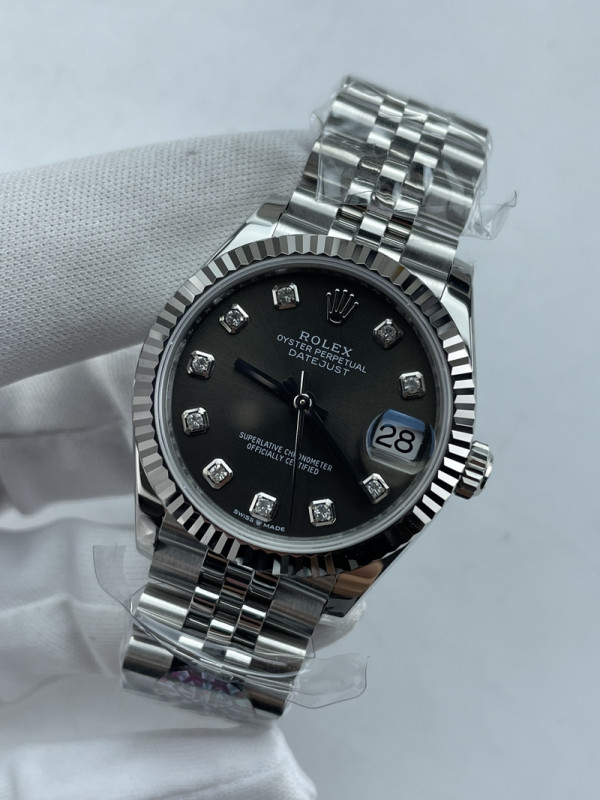 (준비완료/특급배송)NO.3694/롤렉스 데이저스트 31mm 여성용 시계 그레이다이얼 텐포인트 플루티드 베젤 쥬빌레 밴드 (QP공장)
